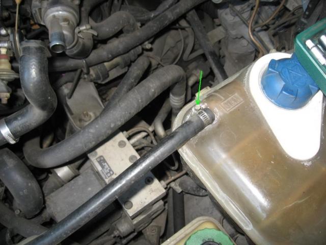 Опять же, чтобы не мешался и было удобнее работать, ослабляем хомут пароотводящей трубки от расширительного бачка (очень эта трубочка любит отламываться), стягиваем шлангочку и отводим в сторону.