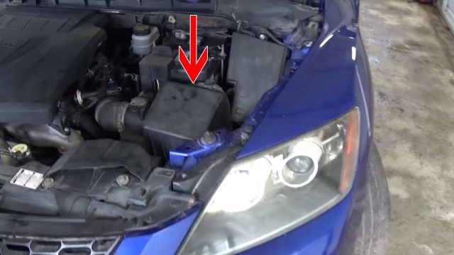 Воздушный фильтр Мазда СХ-7 находится с правой стороны в моторном отсеке.