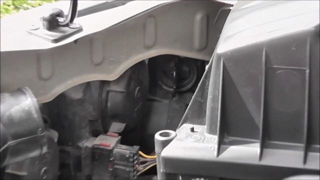 - Чтоб добраться до правой фары, сначала снимается нижний воздуховод с фильтра, его необходимо просто вынуть, но посиживает он достаточно плотно. Чтоб убрать и верхний воздуховод, сначала откручивается хомут, который фиксирует данный элемент, он дополнительно посиживает крепко. В конце процесса снимается сам корпус, он крепится на 4 втулках, чтоб демонтировать его, необходимо потянуть ввысь и в сторону мотора.