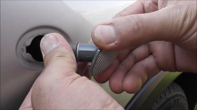 Нужно отщелкнуть фиксатор и отодвинуть заглушку так, чтобы внутрь проникала рука