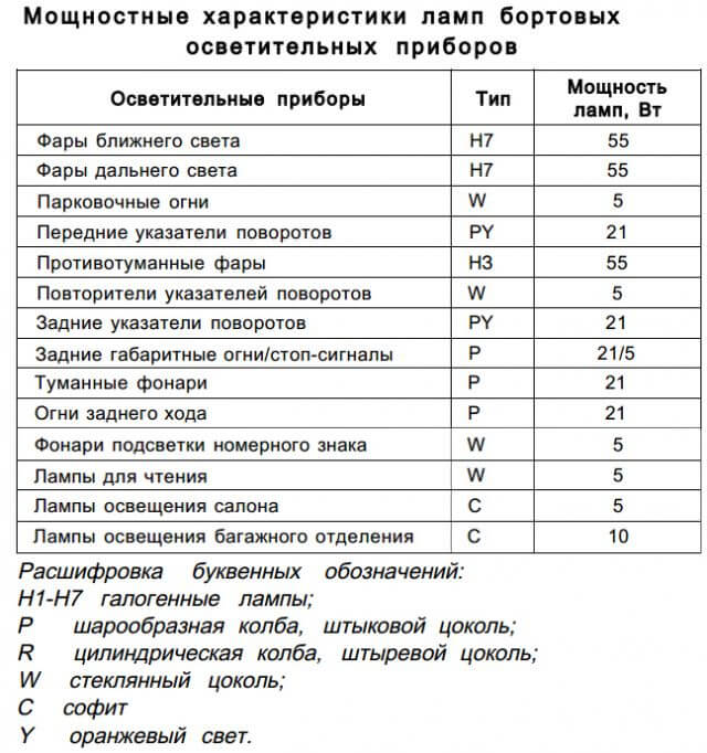 - габаритные огни и стоп-сигналы — лампы P21/5;