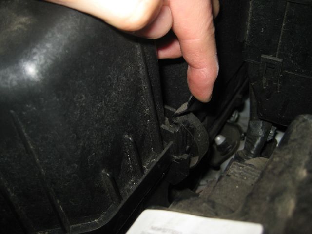 Отстегните клипсы удерживающие верхнюю крышку корпуса воздушного фильтра. Производить данную процедуру необходимо максимально аккуратно, поломка клипсы удерживающей защелку может обернуться заменой крышки и самих защелок.