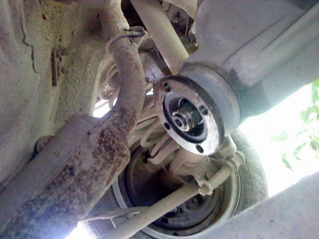 Выкручиваем кардан от моста (при помощи ключа на 13), и откручиваем болты эластичной муфты.