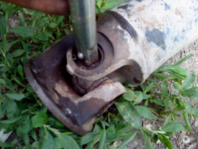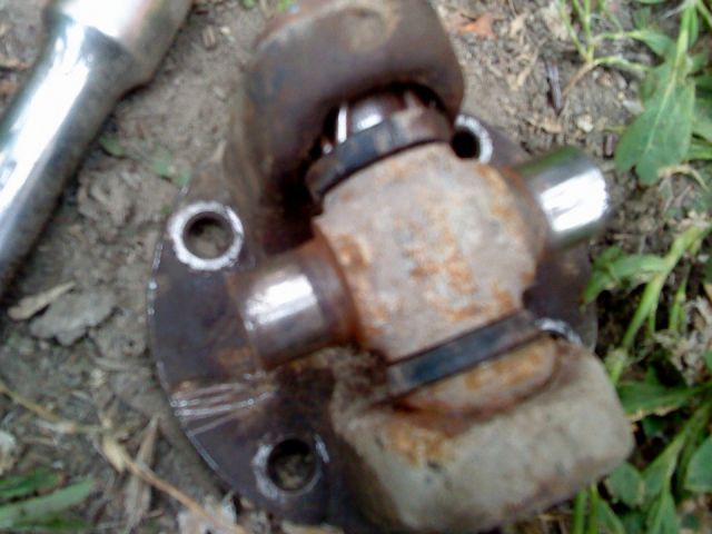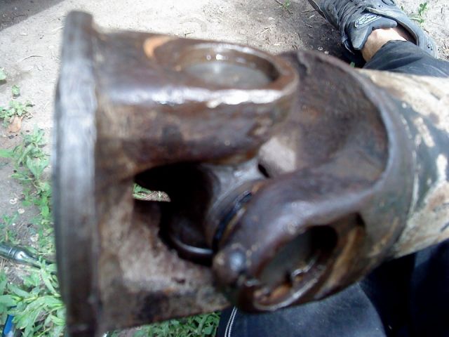 Другая крестовина которая располагается в том месте где кардан к редуктору цепляется, снимается точно так же, снимать крестовины вообще не бойтесь, они под замену, поэтому с ними можно делать что хочешь, выбивать, пилить и так далее, главное вилки не повредите карданных валов и тогда всё нормально будет!