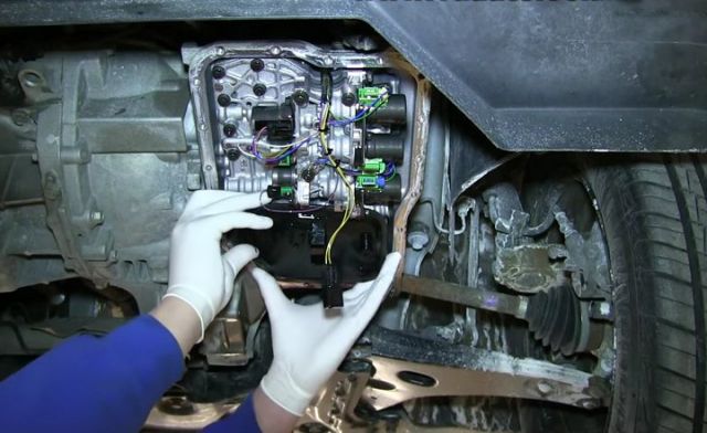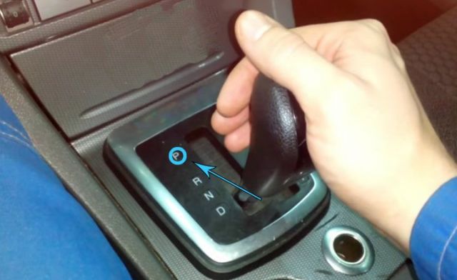 Запускаем двигатель и, нажав педаль тормоза, последовательно переводим селектор (рычаг выбора передач) через все положения, задерживая его в каждом положении так, чтобы включилась передача. Затем переводим селектор в положение «Р» и оставляем двигатель работать на холостом ходу.