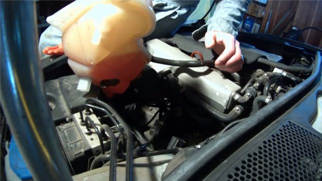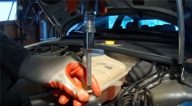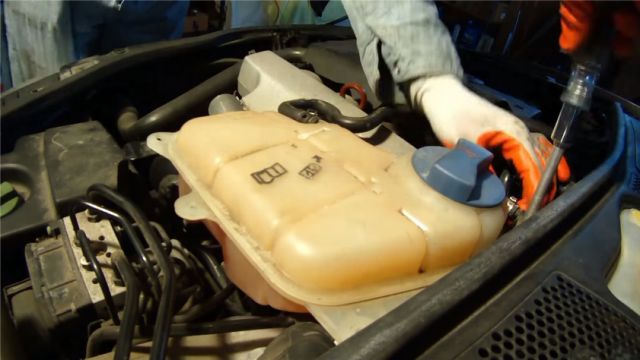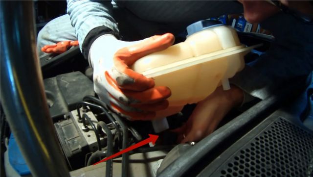 Открутить крепления расширительного бачка.