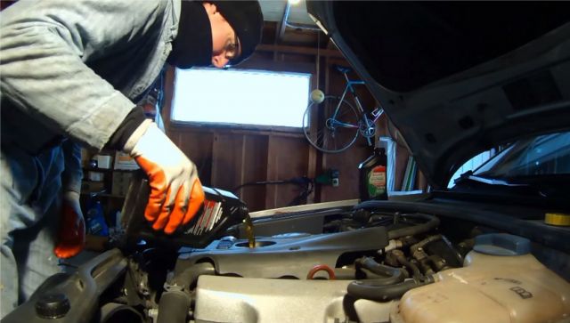 Залить новое масло в двигатель и закрыть заливное отверстие.