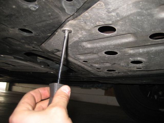 Доступ к маслянному поддону и фильтру может закрывать защита. Ее следует снять, открутив 4-е винта крестовой отверткой.
