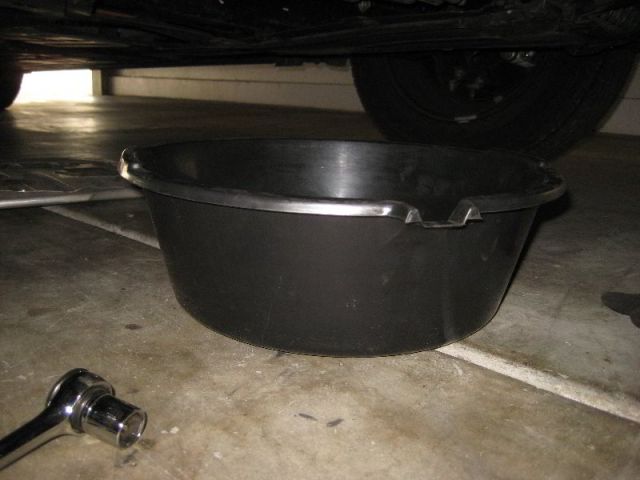 Под сливное отверстие на масляном поддоне нужно подставить пустую тару для сбора масла. Затем открутить сливной болт ключом (головкой) на 17 и слить масло в емкость.