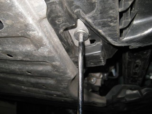 Установите машину на подъёмник, эстакаду или смотровую яму. Прогрейте двигатель до рабочей температуры. Отверните крышку маслозаливной горловины, если усилием руки это сделать не получается, используйте накидной ключ на 14. Снимите защиту картера, если она установлена на автомобиле. Отверните сливной болт с помощью торцевой головки или накидного ключа на 17: