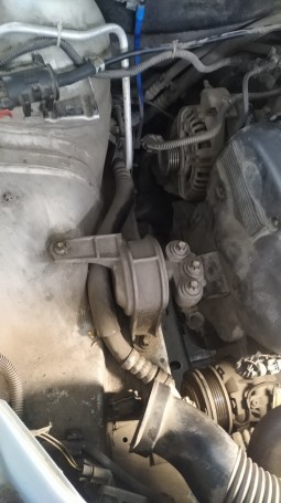 - Двигательная опора крепится к блоку цилиндров при помощи 3 болтов. Отворачиваем их и снимаем опору.