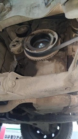 - Откручиваем болт крепления шкива коленвала, снимаем шкив приводного ремня.