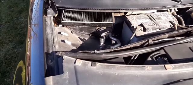 Понадобится снять уплотнительную резинку и демонтировать защитную панель, закрывающую доступ к салонному фильтру. Никаких инструментов при этом не понадобится. В открывшейся нише, можно увидеть салонный фильтр, установленный в корпус. Удобней будет извлечь фильтр, поддев его отверткой.