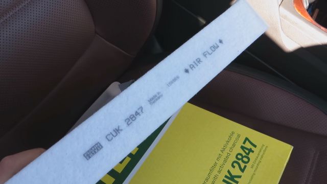 Вытащить старый салонный фильтр и установить на его место новый правильной стороной. Какой стороной устанавливать салонный фильтр подскажут нарисованные на нем стрелочки(по направлению движения воздуха).