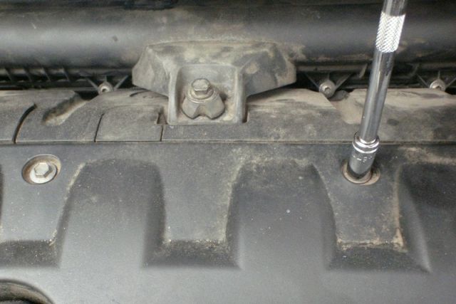 Также возьмите ключ с удлинителем и головка на «8» откручивать пластиковую защиту двигателя.