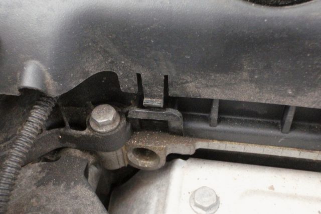 1. Открываем капот машины, снимаем крышку заливной горловины с двигателя и откручиваем пластиковый кожух с него. Панель эта поддевается снизу с помощью плоской отвертки и откидывается на себя. Делать это следует очень аккуратно, потому что защелки пластмассового кожуха тоже сделаны из пластмассы и их легко сломать, если действовать неосторожно.