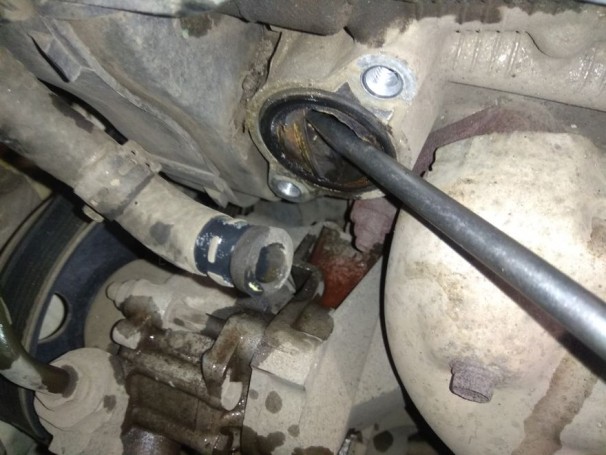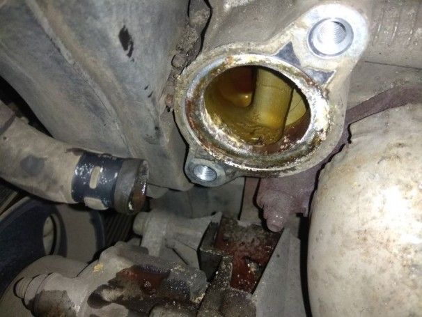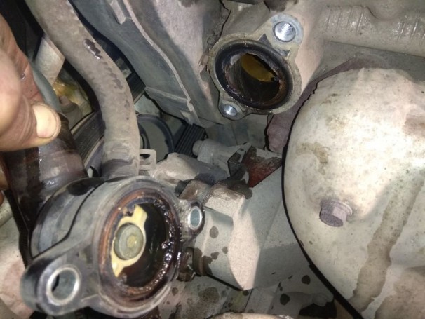 Сняв термостат видно что у нас часть его осталась в двигателе.