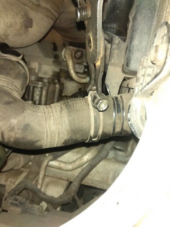 Стягиваем хомуты к центру патрубка. Снимаем патрубок.